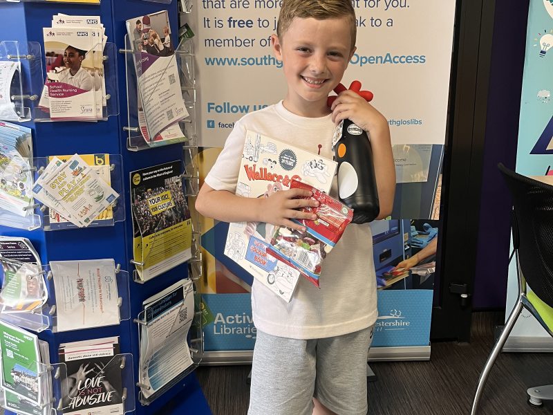 He won a Feathers McGraw water bottle, a Wallace & Gromit colouring book and some sweets.