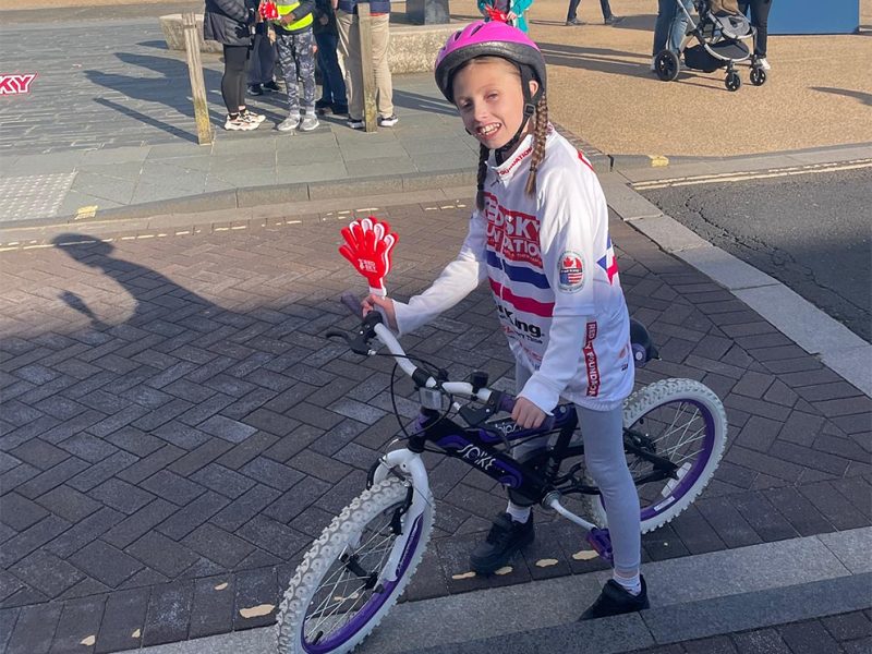 WHEN a team of cyclists, including two of her former teachers and her dad, crossed the finish line at Roker beach near Sunderland after a marathon ride, Elodie Gray was the first to greet them.