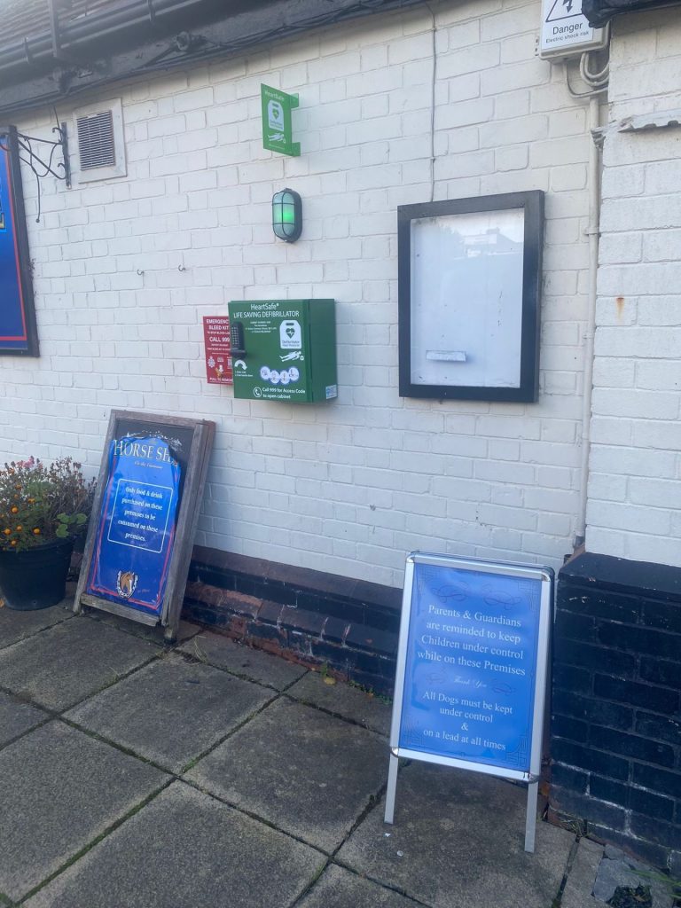 With the permission of The Horseshoe pub at Siston Common, it has been installed on the outside wall, near the doorway and can be accessed 24 hours a day.